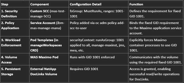 This post details the vital configuration steps required to ensure that Maximo workloads successfully access and interact with existing NetApp NFS volumes by enforcing a fixed Group ID (GID), thereby overcoming standard OpenShift dynamic security constraints.